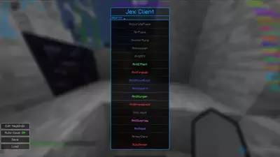 - JexClient предлагает и другие функции, такие как speedhack для ускорения перемещения и noclip, позволяющий проходить сквозь блоки. Эти инструменты делают исследование мира Minecraft более динамисчными и позволяют игрокам находить скрытые локации и избежать сопротивления.